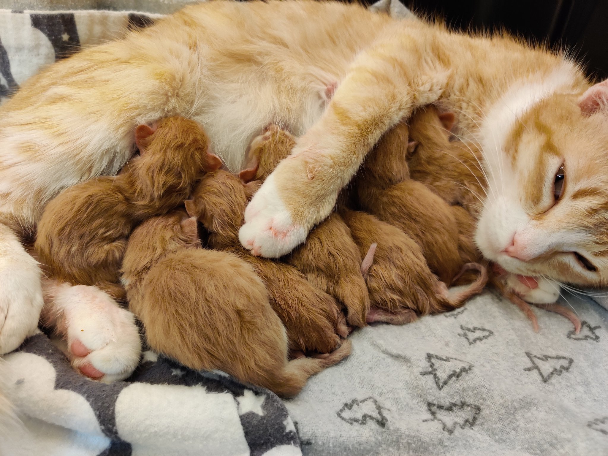 The remaining 5 babies and mom are doing great and healthy. The vet confirmed it with me up until tonight I noticed one kitten panting. Darling as a newborn. Or maybe trying to hiss. This is much more common in kittens. Learn more about newborn kittens in our Kitten Guide. And as their granmum I wanted to make this video to celebrate their bi.